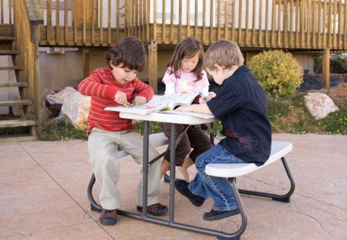 Tables, chairs and picnic tables for children 2-5 years old.